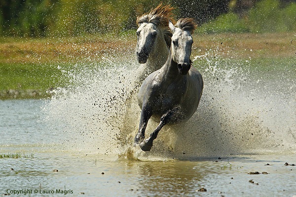 Cavalli Camargue nella Riserva Foce dell'Isonzo (foto www.lauromagrisphotonature.com)