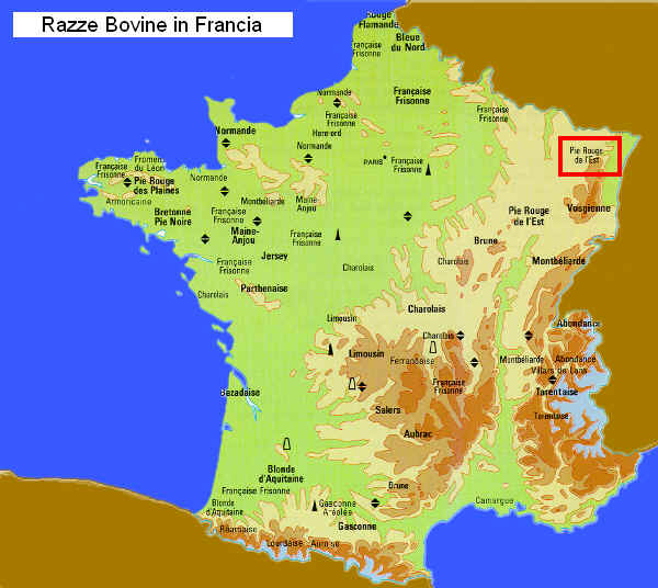 Zona di allevamento della razza Piè Rouge de l'Est in Francia