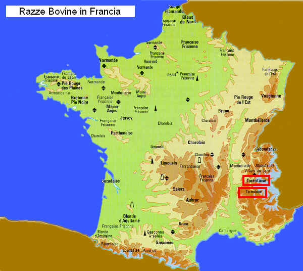 Originaria della Alpi Francesi, deriva da antica popolazione bovina lì stabilitasi da molti secoli. Riconosciuta ufficialmente come razza nel 1859. Allevata nella Alpi Francesi e in minima parte nel Massiccio Centrale. Esportata in molti Paesi anche extraeuropei. E' una delle 11 razze che aderiscono alla Federazione Europea delle razze del Sistema Alpino (Abondance-Francia; Grigio Alpina-Italia; Herens-Svizzera; Hinterwälder-Germania; Pinzgauer-Austria; Rendena-Italia; Tarentaise-Francia; Tiroler Grauvieh-Austria; Valdostana-Italia; Vordelwälder-Germania; Vosgienne-Francia).